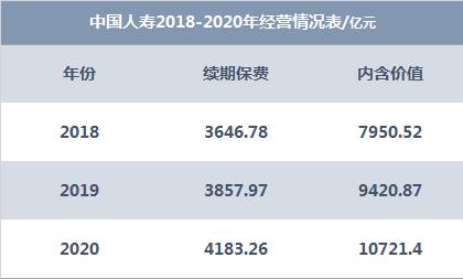 这也直接做大了国寿的续期保费规模和内含价值,2018内涵价值7950亿元,2020年达到10721亿元。